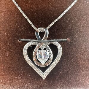 Verbiage taken from Redbee on Amazon to describe the necklace: “Gold Plated Necklace for Women: These necklaces have multi-layered 18k white gold plating are different from those very thin layers of gold. This way can extend the appearance of this type of jewelry, so it can still function for a long time.” Beautiful CZ accent diamonds throughout! Says "I love you always and forever" around the center cz. I borrowed some stock photos from their website to help show you how it looks.
