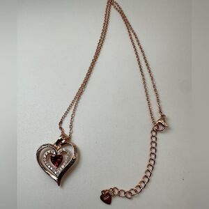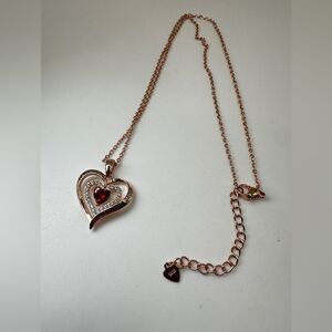NIB Redbee 18kt GP, Rose gold over s925, "Garnet" CZ in heart necklace!