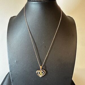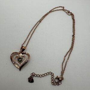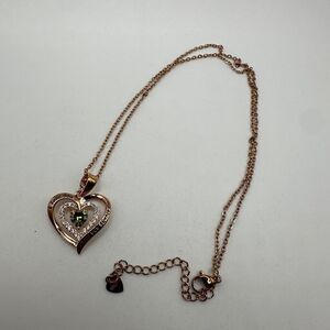 NIB Redbee 18kt GP, Rose gold over s925, Green CZ in heart necklace!