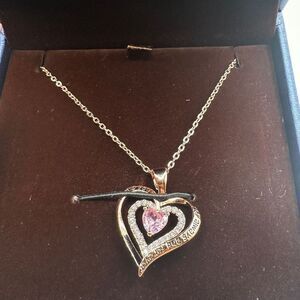 NIB Redbee 18kt GP, Rose gold over s925, Pink CZ in heart necklace!