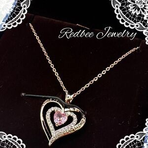 Verbiage taken from Redbee on Amazon to describe the necklace: “Gold Plated Necklace for Women: These necklaces have multi-layered 18k rose gold plating are different from those very thin layers of gold. This way can extend the appearance of this type of jewelry, so it can still function for a long time.” Beautiful CZ accent diamonds throughout! Says "I love you for always and forever" around the heart. In the center is a pink cz heart diamond. I borrowed some stock photos from their website to help show you how it looks.
