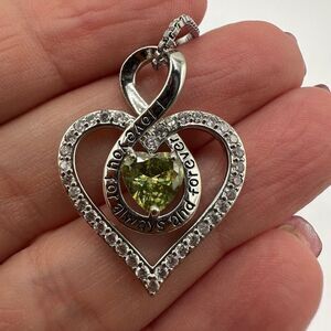 Verbiage taken from Redbee on Amazon to describe the necklace: “Gold Plated Necklace for Women: These necklaces have multi-layered 18k white gold plating are different from those very thin layers of gold. This way can extend the appearance of this type of jewelry, so it can still function for a long time.” Beautiful CZ accent diamonds throughout! Says "I love you always and forever" around the cz "peridot".