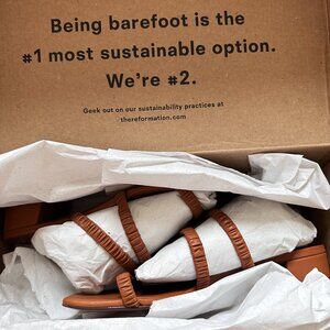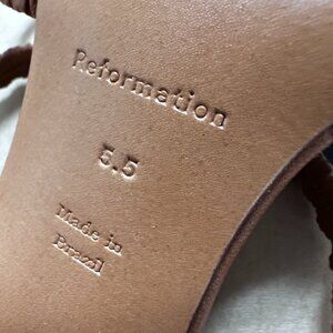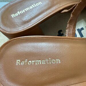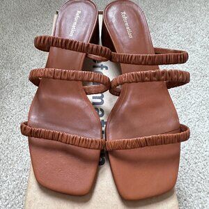 NIB Reformation Assunta Leather Strappy Block Heel Mule – Pecan Brown – Size 5.5