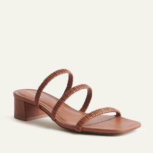 The Assunta is a minimalist yet chic mule with three slim ruched leather straps and a block heel for comfort. Made from genuine leather in a rich pecan shade, these heels pair effortlessly with just about anything in your wardrobe.