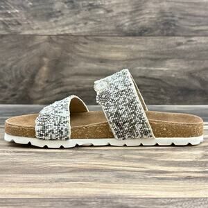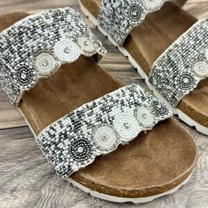 NIB Roan Bed Stu 8 Jury White Multi Beaded Slide Sandals Boho