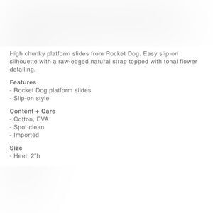 NIB Rocket Dog Hana Orchard platform slides. Size 8