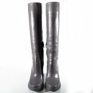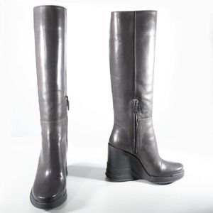 NIB Runway Prada Rubber Wedge Heel Knee High Boot Mercuric (Grey)