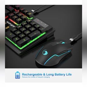 【Rechargeable & Long Battery Life】The keyboard is equipped with a 3000 mAh battery, and the mouse has equipped with an 800 mAh battery. The long battery life allows you to use them continuously for 8 hours with light.