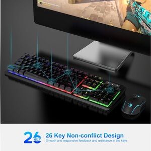 【Durable Ergonomic Keyboard and Mouse】The keys have a 10 000 000 keystrokes lifetime so that you can hold on to them for the next decade! ABS keycaps adopt a two-color injection molding process, and the letter of characters never fades. Thick, firm, frosted metal cover, long service life, and never deforms. The mouse fits the palm perfectly, and the anti-sweat and non-slip design gives you complete control.