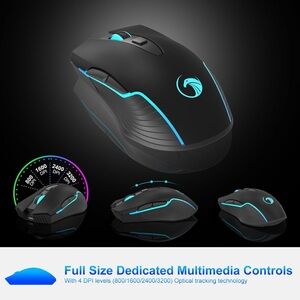 【Light Up Keyboard and Mouse】The keyboard has built-in three groups of rainbow backlight effects and supports breathing modes, 3 static modes, and 4 brightness levels. The luminous design of Letters, logo, gaps, and surroundings makes it the best light-up wireless keyboard on the market. The mouse has a built-in 7-color cyclic gradual lighting effect.