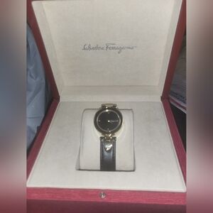 NIB SALVATORE FERRAGAMO GILIO ANALOG DISPLAY QUARTZ BLACK WATCH