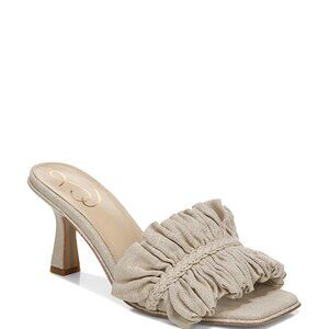 NIB SAM EDELMAN Womens Beige Ruffled Comfort Kady Square Toe Flare Slip On Dress