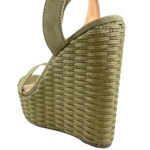 NIB SCHUTZ EDUARDA WEDGE SANDALS IN ASPEN GREEN SZ:9.5 NWT