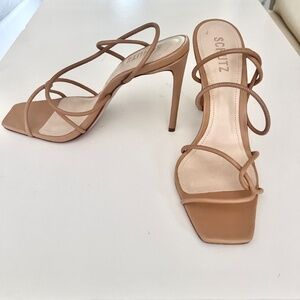 Sexy strappy neutral that works for every season. Classic and timeless, goes with everything. Pretty soft camel/nude color looks great with denim and all dressed up!