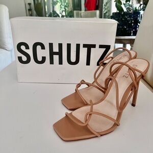 NIB SCHUTZ Gabiele Strappy Leather Sandal in Honey Beige - Size 9.5M