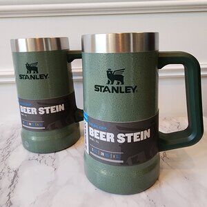NIB SET OF TWO Stanley Adventure Big Grip Beer Stein Hammertone Green 24 oz