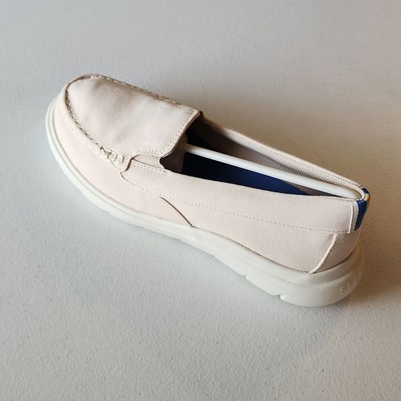 NIB SPERRY Captain Moccasin in SEA Ivory Canvas Slip Ons, Size 8.5