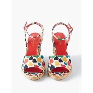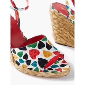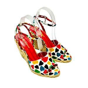 NIB Saint Laurent YSL Paloma EU 38.5 US 8.5 Multi Heart Print Espadrille Wedge Sandals