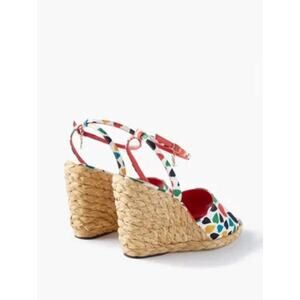 NIB Saint Laurent YSL Paloma 38.5 8.5 Multi Heart Print Espadrille Wedge Sandals