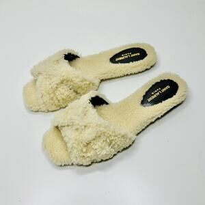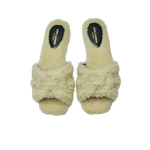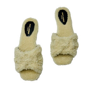 NIB Saint Laurent YSL Tribute EU 37 US 7 Slip On Flat Sandals Beige Shearling