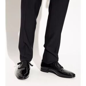 Exude refined sophistication with these authentic Salvatore Ferragamo Black Magic Patent Leather Derby Shoes, crafted in Italy from high-shine black patent leather. Featuring a sleek lace-up silhouette, almond toe, and smooth leather sole, these Derbies blend timeless craftsmanship with modern luxury.
