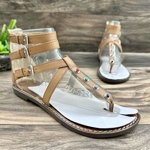 NIB Sam Edelman 8.5M Camel Genevive Leather Studded Strappy Gladiator Sandals