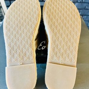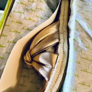 An adorable pair to show off your toes in Spring and Summer! Ample, soft leather straps knot atop the toe of a casually elegant slip-on sandal set atop a rustic textured sole.