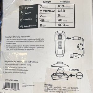 NIB Schwinn Intensa 100 Lumen LED Light Set USB Rechargeable Headlight No Tools,