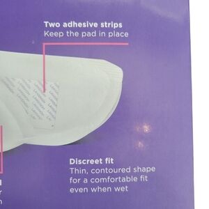 Stay dry nursing pads. Dermatologist tested. Super-soft for sensitive skin. Waterproof lining for leak-proof confidence. These nursing pads are sealed in original manufacturer packaging. Please see photos for close-ups of package information!