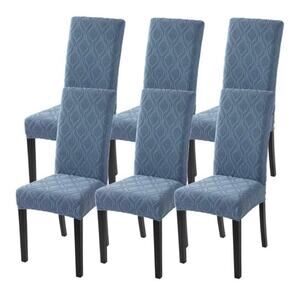 NIB SearchI Washable Stretch Jacquard Gray-Blue Geometric Kitchen Chair Covers