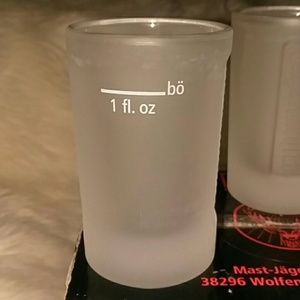 Awesome lot 6 new in box authentic Jagermeister 1OZ frosted shot glasses.From Woltenbuttel Germany.Each shot glass says Jagermeister down both sides of glass and on the bottom it has the Jagermeister deer logo.And the last side has the 1OZ measurement on it.Have only been removed from box to inspect before shipment and while listing the item itself.Start warm months off right your own personal shot glasses for you and your friends. Donated to help raise money for a girl with SADS heart conditio