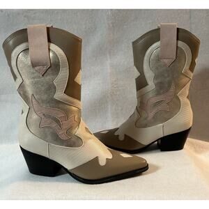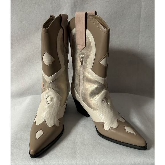 NIB Shu Shop ZIZI Western Motif Cowgirl Gold Chunky Heel Boots -8