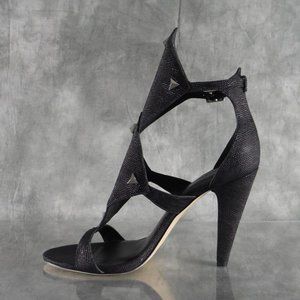 NIB Sigerson Morrison MARINO Embossed Black Leather Ankle Strap Sandals 7.5