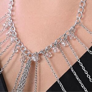 NIB Simulated Glass Beaded Multi Strand Body Chain 20-22 Inches in Silvertone