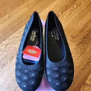 NIB Skechers Cleo Sport Metallic Flats Sparkly Blooms Black - Size 7 Wide Fit