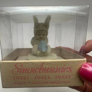 NIB Snowbunnies Dept 56 Bisque Porcelain Hinged Box Tweet Tweet Tweet Blue Bird