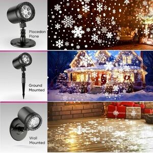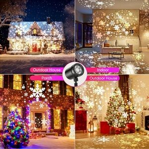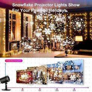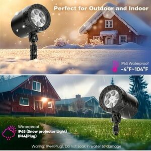 Upgraded HD LED Snowflake Projector is designed with 4 different dynamic snowflake patterns that mimic real snow scenes. allowing countless snowflakes of different sizes to move automatically to present the effect of heavy snow. Even if you live in a place where it does not snow, you can still enjoy the beauty of white Christmas. No complex operation, just plug and play, with its 170-degree adjustable gear, effortlessly change the projection direction of the outdoor Christmas lights. and the Christmas Projector is equipped with a base and ground stake so that you can better choose whether to place it on a flat surface or fix it on the wall. The projection range is wider, and the snowflake effect is more realistic. The best projection distance: 10M/32.8Ft, and best projection coverage: 30 m²/300sq. ft, maximumly cover 50㎡/538sq.ft. Designed with high grade IP65 waterproofing and IP44 power adapter. Works in all weather.