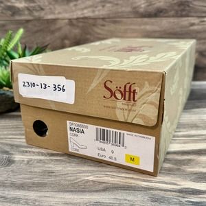 NIB Sofft Nasia 9M 40.5 Leather Classic Pumps Comfort Block Heels Cork Brown