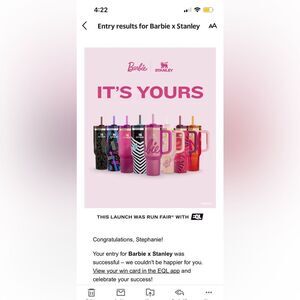 This Stanley x Barbie 80s Dynamite Quencher H2.0 FlowState Tumbler | 40 OZ is brand new in box. Order confirmed 9/10/24 and will ship ASAP once I get it.