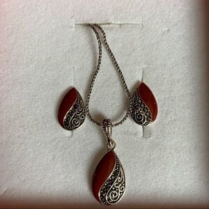 ❤️Lovely sterling silver 19” length chain with pendant and matching earrings. Sterling silver with “925” stamp.