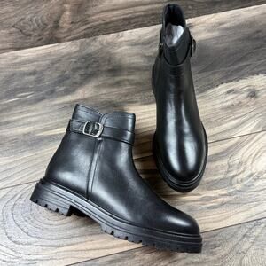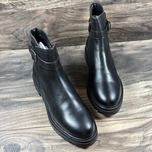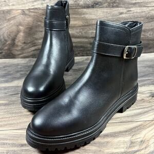 NIB Steve Madden Maezy 9.5M Black Leather Lug Sole Zip Ankle Boots