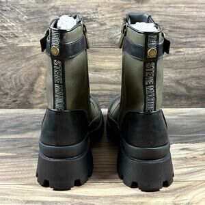 NIB Steve Madden Matriarch Leather Mixed Media Ankle Combat Boots Olive Multi 8M