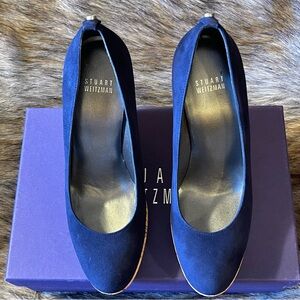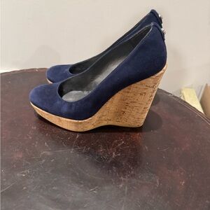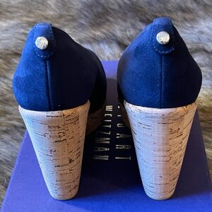 NIB Stuart Weitzman Corkswoon Blue Suede Platform Wedges Size 7