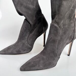 Stuart Weitzman Leigh 95 Gray Suede Bootie Boot Heel Stiletto Pointed Size 37.5