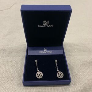 NIB Swarovski Crystal Silver circle motif dangling drop earrings w/ certificate