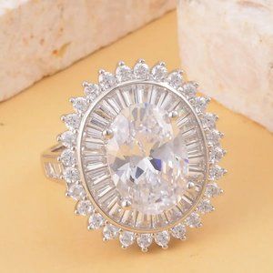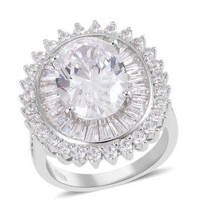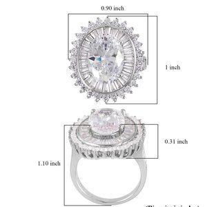 NEW IN BOX Lustro Stella's Finest Simulated Diamond Double Halo Ring in Platinum Over Sterling Silver 14.10 ctw.