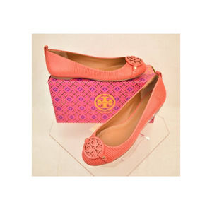 NIB TORY BURCH ORANGE MINI MILLER LIZARD PRINT LEATHER BIG REVA FLATS 8 BRAZIL