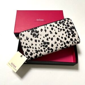 NIB TRINA TURK Long Zip Around Animal Print Wallet Boxed Black White Chic