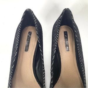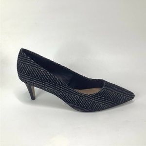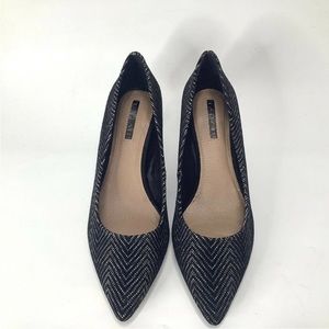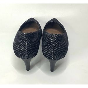 NIB Tahari Gia Black White Chevron Shoes Pumps 6.5M Textile Pointy Toe heel
