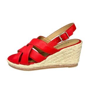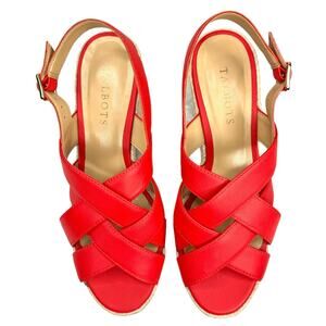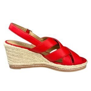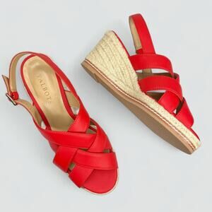 Talbots 7.5M Saylor Red Espadrille Nappa Leather Wedge Slingback Sandal $139